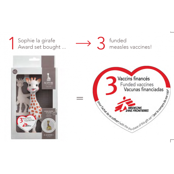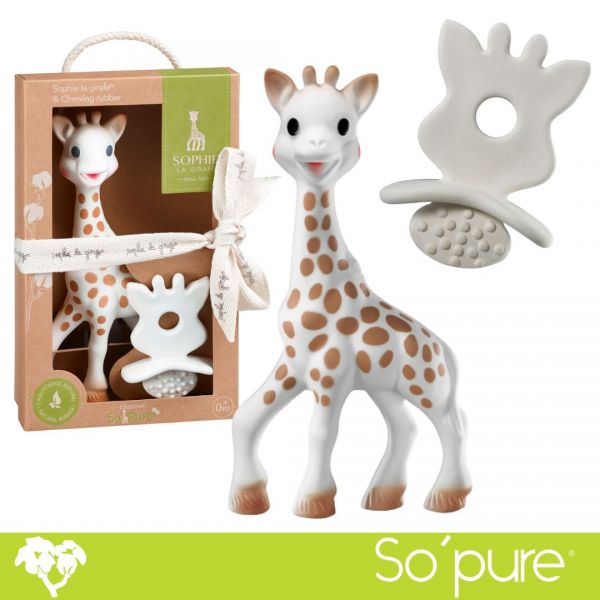 Η Σόφι είναι φτιαγμένη από 100% φυσικό καουτσκούκ και χρώματα που χρησιμοποιούνται και στη μαγειρικη και είναι απολύτως ασφαλής να τη μασάει το μωρό, όπως θα έκανε με μία πιπίλα ή τη θηλή ενός μπουκαλιού. Η απαλή υφή της και τα πολλά μασώμενα μέρη της (αυτιά, κέρατα, πόδια), δίνουν στο μωρό τεράστια ανακούφιση στα πονεμένα ούλα του, κατά τη διάρκεια της οδοντοφυϊας.