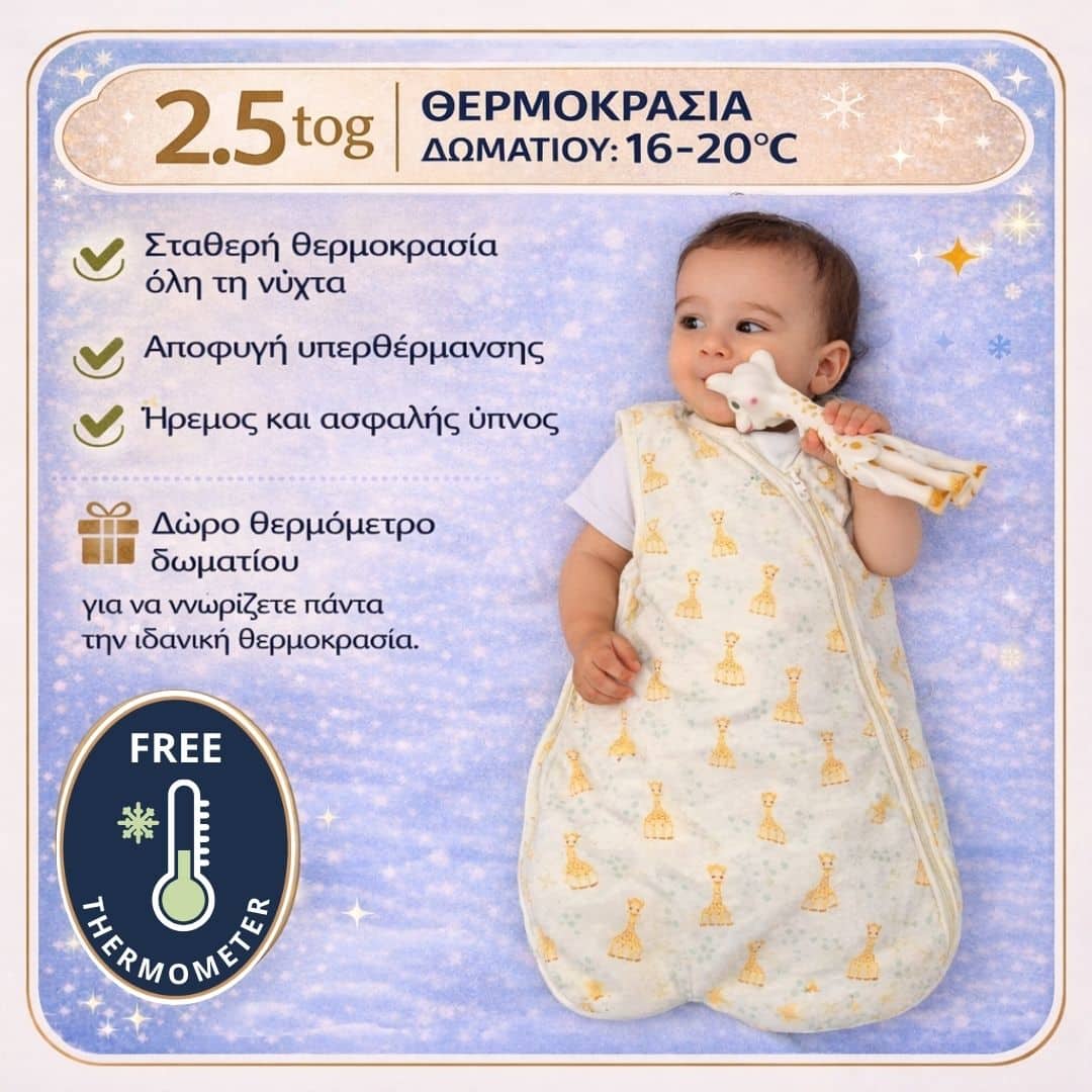 Σε συνεργασία με τη Σόφι την Καμηλοπάρδαλη, το πιο αγαπημένο βρεφικό brand παγκοσμίως, οι υπνόσακοι BabyBliss σχεδιάστηκαν για να προσφέρουν στο μωρό σας τη μέγιστη άνεση, ασφάλεια και ιδανική θερμοκρασία ύπνου κάθε βράδυ.