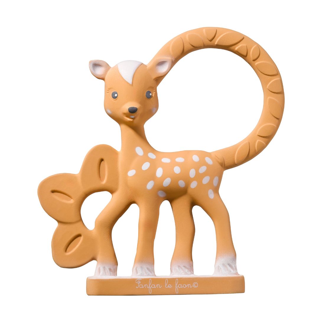 Αυτό το μασητικό από φυσικό καουτσούκ είναι φτιαγμένο ακριβώς για αυτή τη φάση — να το μασάει το μωρό και να ανακουφίζονται τα ούλα του.