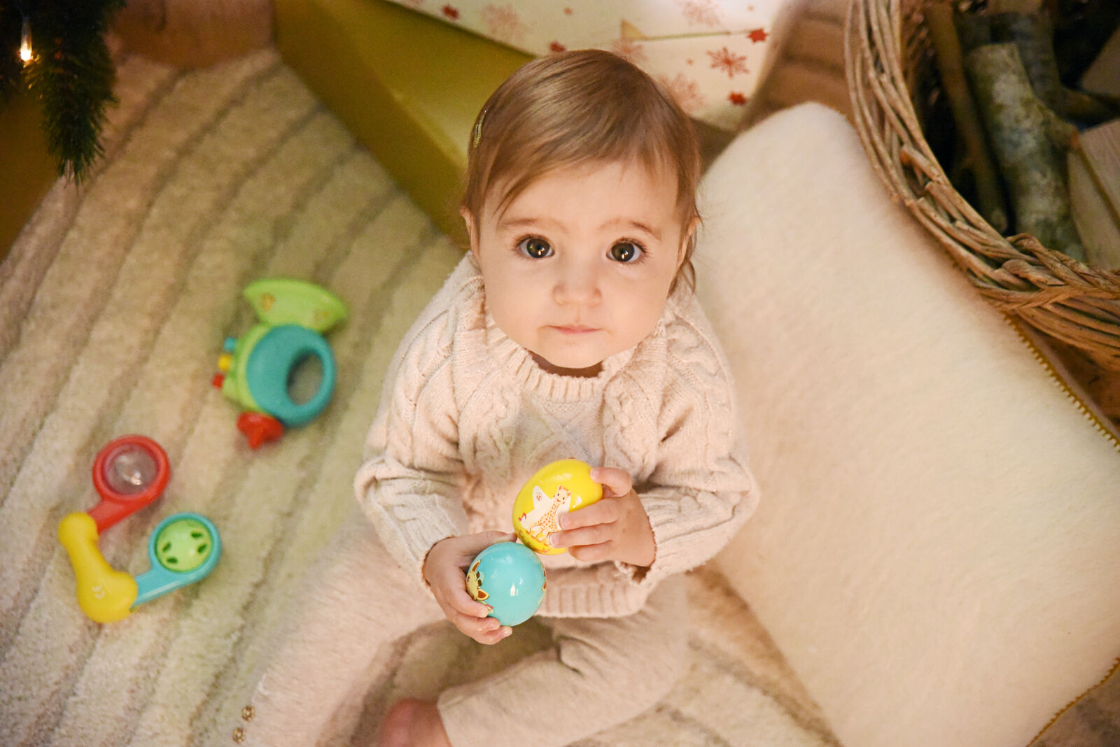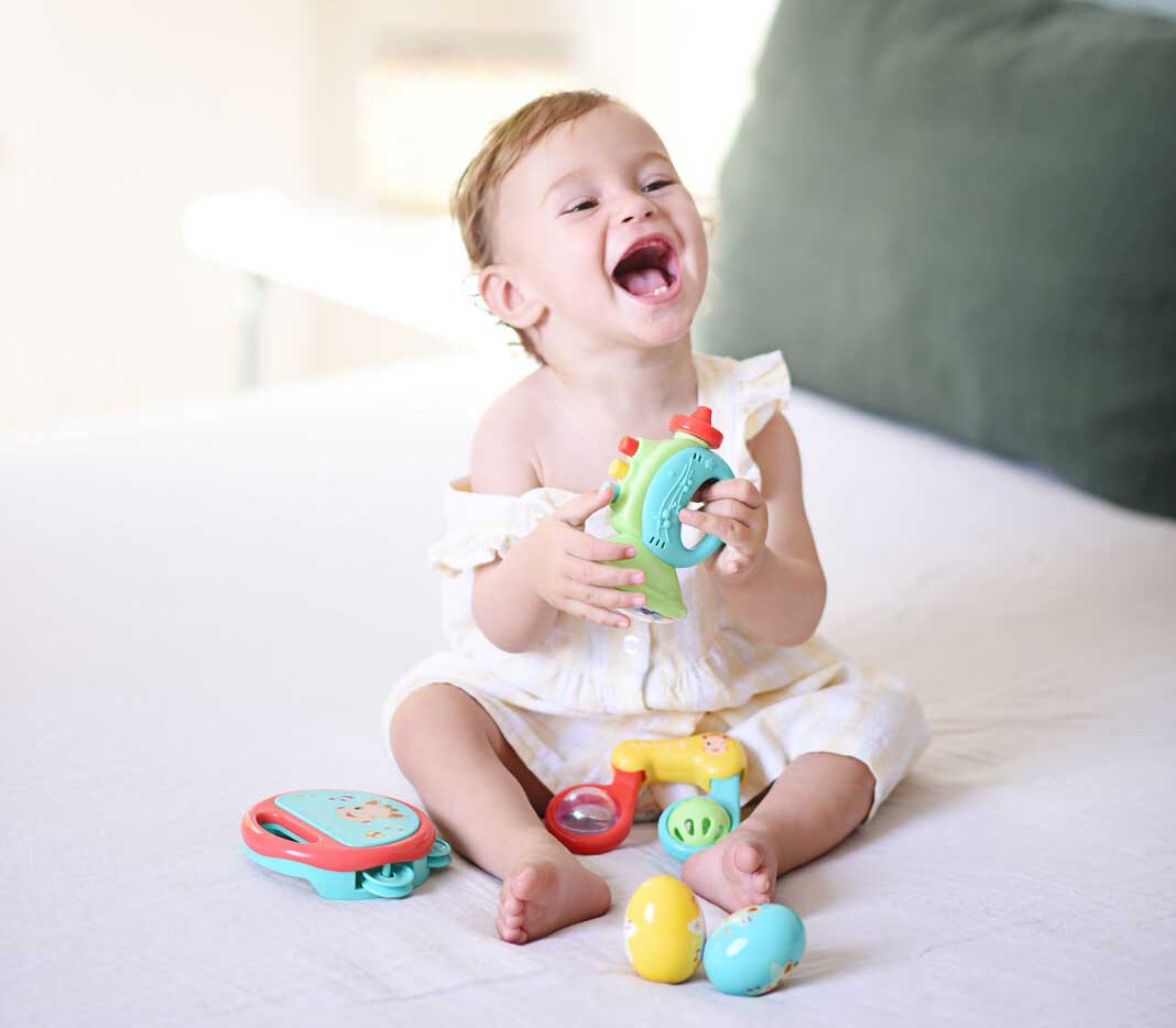 Καθώς το μωρό παίζει, αναγνωρίζει διαφορετικούς ήχους, πειραματίζεται με ρυθμούς και αναπτύσσει τη μουσική του αντίληψη. Παράλληλα καλλιεργεί τον συντονισμό χεριού-ματιού, τη λεπτή κινητικότητα και τη συγκέντρωση — όλα μέσα από φυσικό, ελεύθερο παιχνίδι.